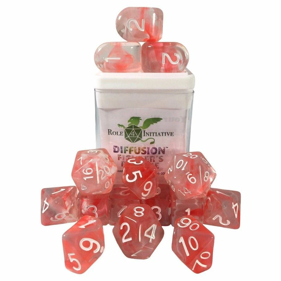 This set of 15 dice includes 3 Arch’d4, 4d6, 2d8, 2d10, d%, d12, and 2 Balance’d20. Role 4 Initiative dice average about 25% larger than traditional dice and come in a plastic display box. This popular configuration of dice is great for RPGs that can utilize multiples of the same dice in one roll, such as character generation, casting spells, or advantage/disadvantage. The Arch’d4 is a uniquely shaped die that features large top-face numbers and is easier to read, pick up, and roll. The Balance’d20 has a unique arrangement of numbers so that any 5 adjacent sides add to either 52 or 53 to ensure the most even distribution of outcomes.