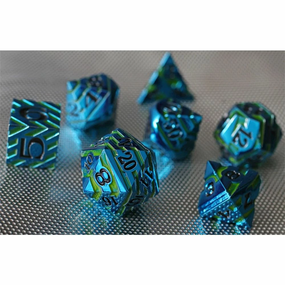 This heavy duty set of 7 polyhedral dice are made of solid METAL