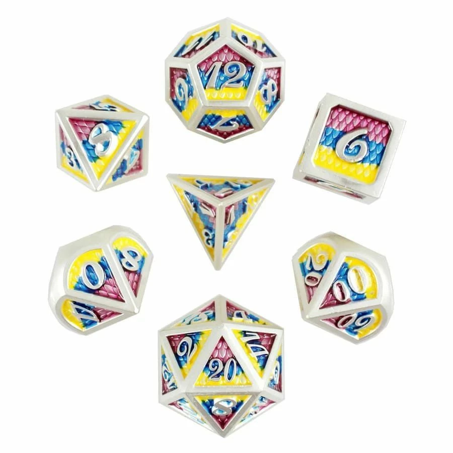 This heavy duty set of 7 polyhedral dice are made of solid METAL