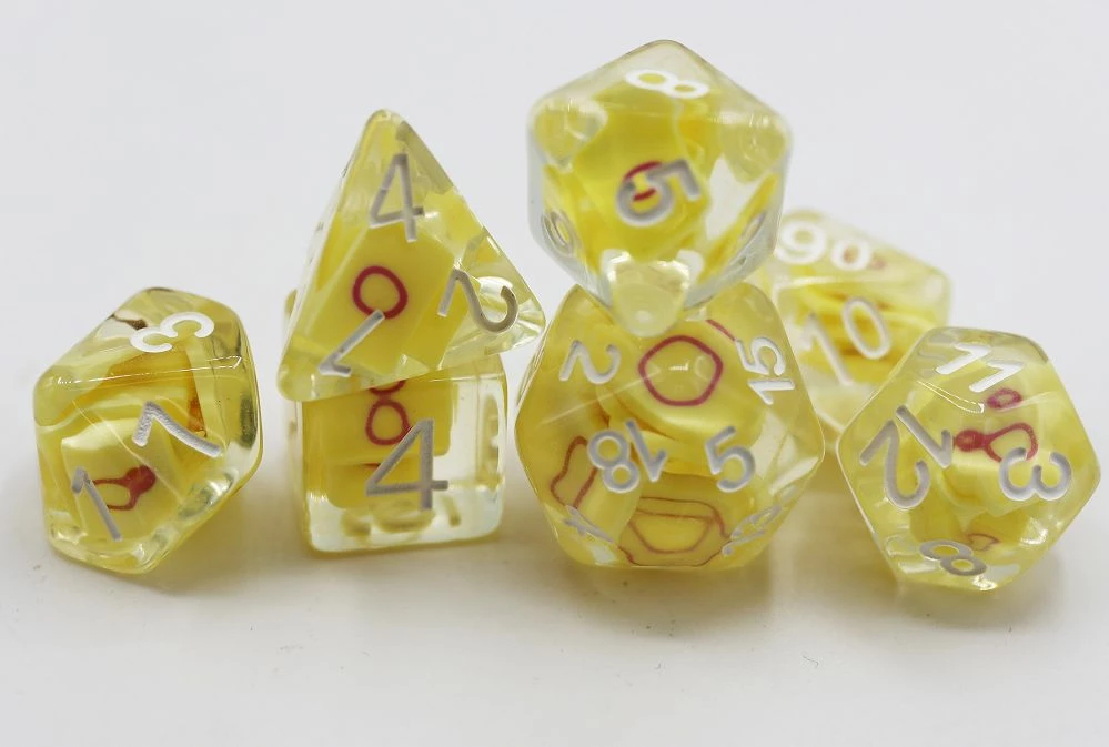 Contains 7 polyhedral dice – D4, D6, D8, D10, D%, D12, D20 dice