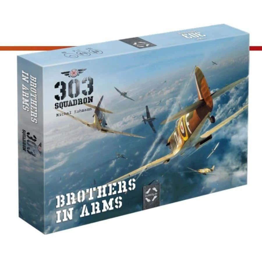 303 Squadron: Brothers in Arms is an expansion for 303 Squadron the boardgame. The Hurricane-equipped 303 Squadron is not alone in the skies over Britain to fight against the Luftwaffe squadrons. A neighboring squadron of British fighters, the famous Spitfires, is also dueling against the German Messerschmitts. They fight bravely, but their planes are badly damaged and ammunition is running out. They need your help to survive. Fighting side by side, victory will be yours.