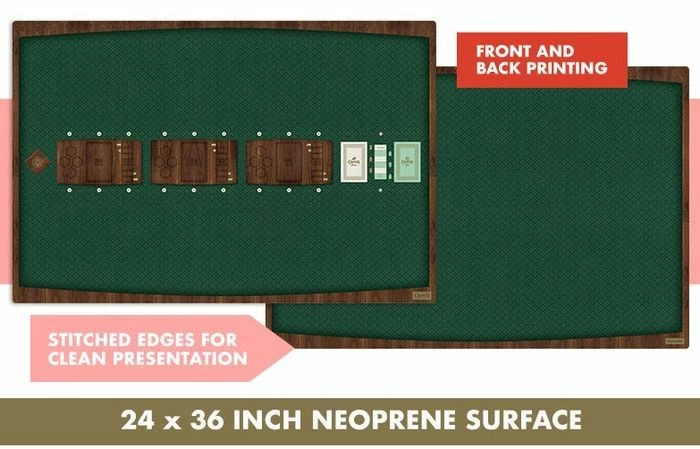 This table topper is a double-sided neoprene mat with stitched edging measuring in at a whopping 2ft x 3ft. You can use the side specific to Caper, which includes the Caper boards and indicators for cards and your stash of stolen goods. Then, when you’re ready for some Campy Creatures, flip that puppy over and you’re mortal hunting casino style!