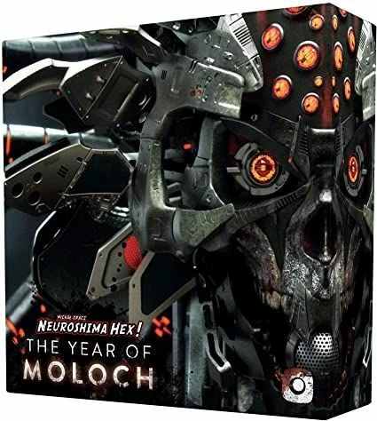 A special edition of best selling Portal Games title: Neuroshima Hex! released as a special for The Year of Moloch. It contains a large box with a new cover, a two-layer board with new graphics, HQ markers for all armies, boards for all armies, a plastic molder, Moloch’s origins campaign, new illustrations of an army units, and FAQ in brochure. Neu-roshima Hex! The Year of Moloch edition is a strategy game set in the post-apocalyptic world of Neuroshima in which each player leads one of four armies: Borgo, Hegemony, Moloch, and Outpost. Each army deck consists soldiers tiles, support tiles, and special actions. You win when all enemy headquarters are destroyed or if your HQ has the least damaged at the end of the game.
