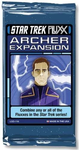The Archer Expansion focuses on Captain Archer and the Temporal Cold War, and also includes Daniels, a Temporal Rift, and the Xindi. The set also contains a new Meta Rule called Combined Decks, designed specifically for optimizing gameplay with more than one Fluxx deck. The Archer Expansion pack works with any of the 4 standalone Star Trek Fluxxes, but for maximum fun, shuffle these cards together with as many of the Trek Fluxxes as you have! Contains 16 cards.