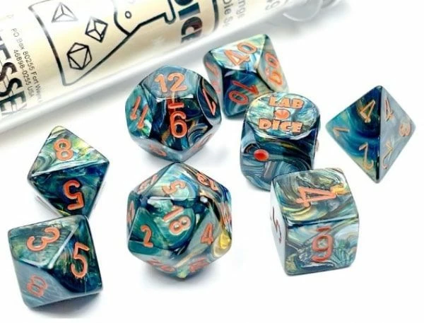 Common Ground Games Chessex Lab Dice Wave 5 7ct Polyhedral Set Lustrous Alpestris/Orange (30049)
