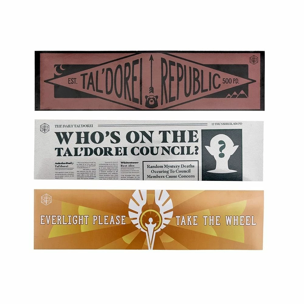 Celebrate the heroes of Tal’Dorei with three bumper stickers inspired by the adventures of Vox Machina.