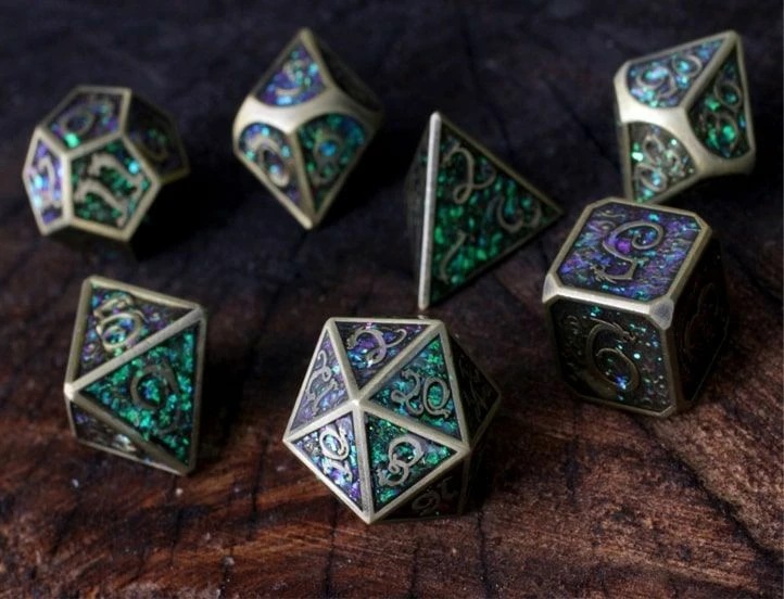 Our heavy duty polyhedral dice are made of SOLID metal, yes, they are literally, Heavy. Metal. dice.