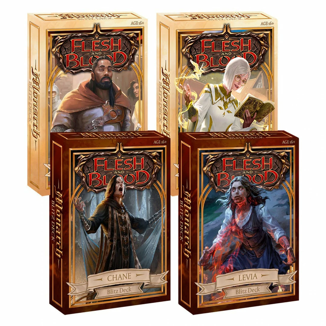 Ready-to-play out of the box, Monarch Blitz decks are designed to be a perfect introduction to Flesh and Blood, and suitable for new and experienced players alike.