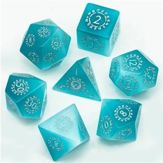Consists of a D4, D6, D8, D10, D12, D%, D20 plus a dice case