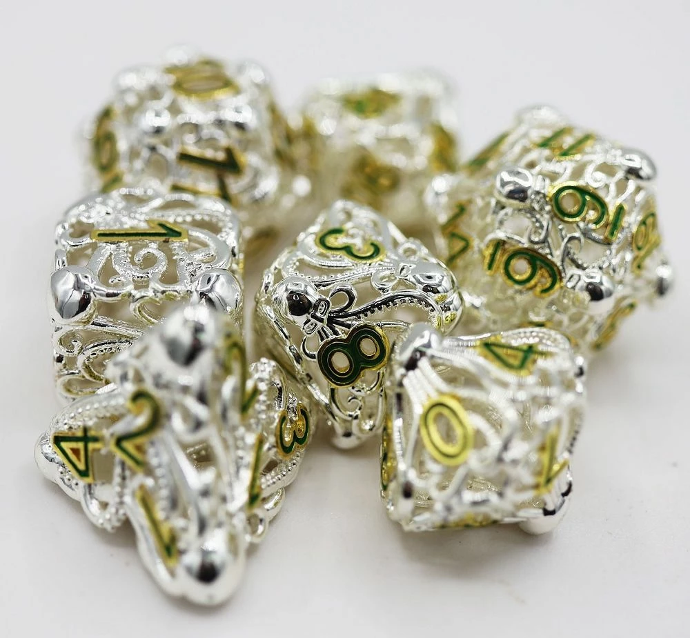 Contains a complete RPG Set: D4, D6, D8, D10, D%, D12, D20