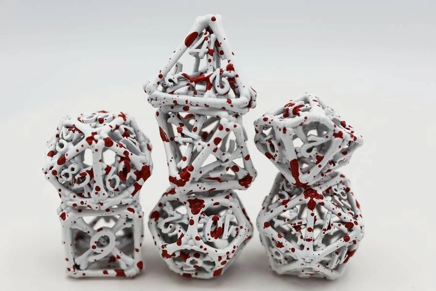 ?? Beautiful Design! Each die displays meticulously artistry with bones and blood splatters! (Don’t be surprised if you start turning heads…)