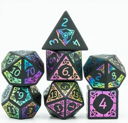 Consists of a D4, D6, D8, D10, D12, D%, D20 plus a dice case