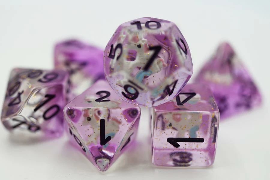 Contains: 7 polyhedral dice – D4, D6, D8, D10, D%, D12, D20 dice