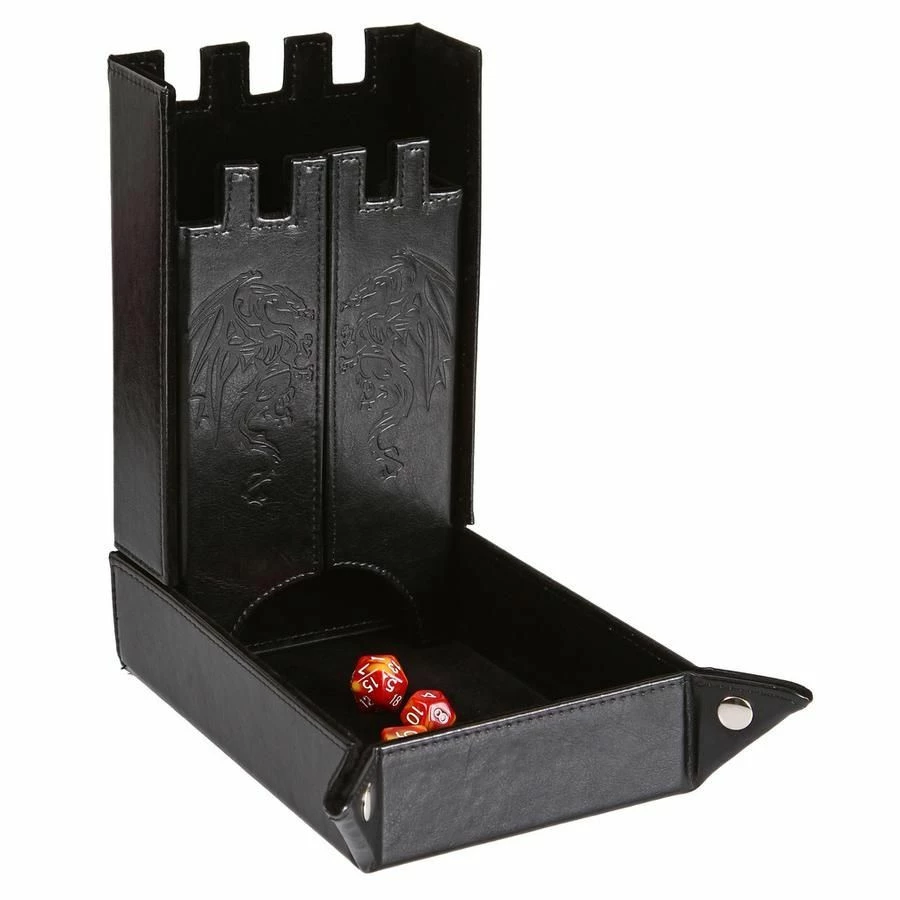 GREAT GIFT: Looking for dungeons and dragons gifts? The Forged Draco foldable Dice Tray with Dice Tower is the perfect DnD gift. Detailed with a dragon desgin on the front gate of the tower and the Forged Dice flaming D20 on the back
