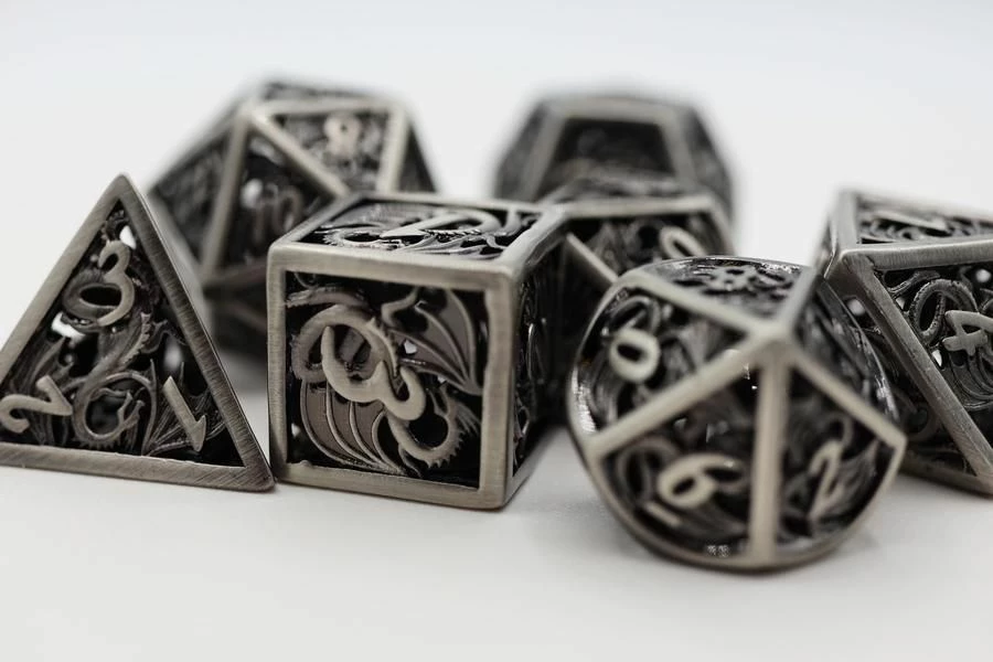 This set of Hollow Dragon Dice is medium weight and makes an amazing sound when rolled.