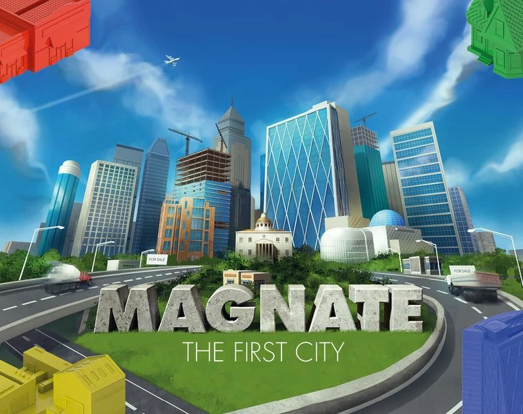 Magnate: The First City is a midweight strategy game for 1-5 players. Each turn players try to grow their property empire by performing different actions, including: buying plots of land, constructing buildings, marketing their developments and selling them completely for their capital value. Once per round, they will also get the chance to attract tenants to any empty buildings they have. If they are successful, they will start collecting rent from their tenants and increase the value of their holdings. At the same time, they will also create new development opportunities for themselves and their opponents.