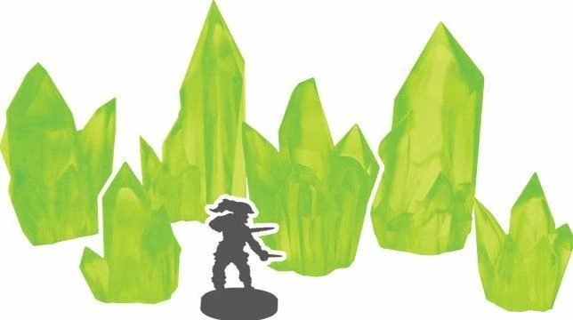 Peridot Crystals contains a number of greenish crystal formations, perfect for creating areas of dangerous terrain, adding magical elements to the table, or using as objectives for your games.