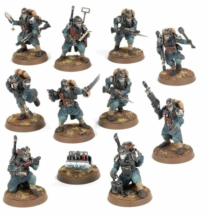 This kit builds a unit of 10 Veteran Guardsman in the uniforms of the legendary Death Korps of Krieg, plus an extra Medikit model. The Veteran Guardsmen box is suitable for games of Kill Team, as well as Warhammer 40,000. One model can be built as a Sergeant Veteran, and nearly every model has a selection of weapon options, allowing them to be built for a variety of tactical roles. You can also build them as a standard Infantry Squad, armed with lasguns.