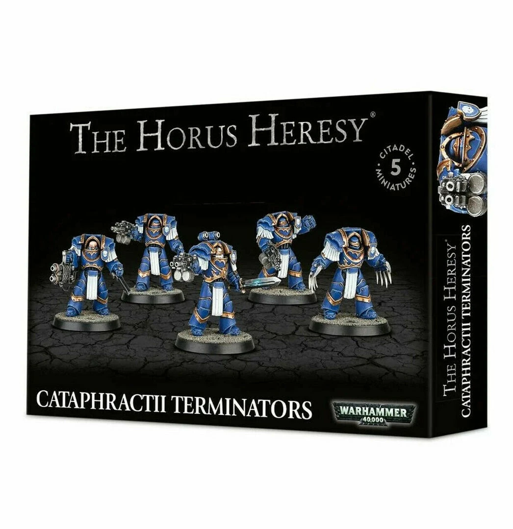 This multi-part plastic kit contains the components necessary to assemble five Cataphractii Terminators, with a huge array of weapon options; combi bolters, power fists, lightning claws, heavy flamers and chain fists are available. Supplied with a transfer sheet and five Citadel 40mm Round bases.