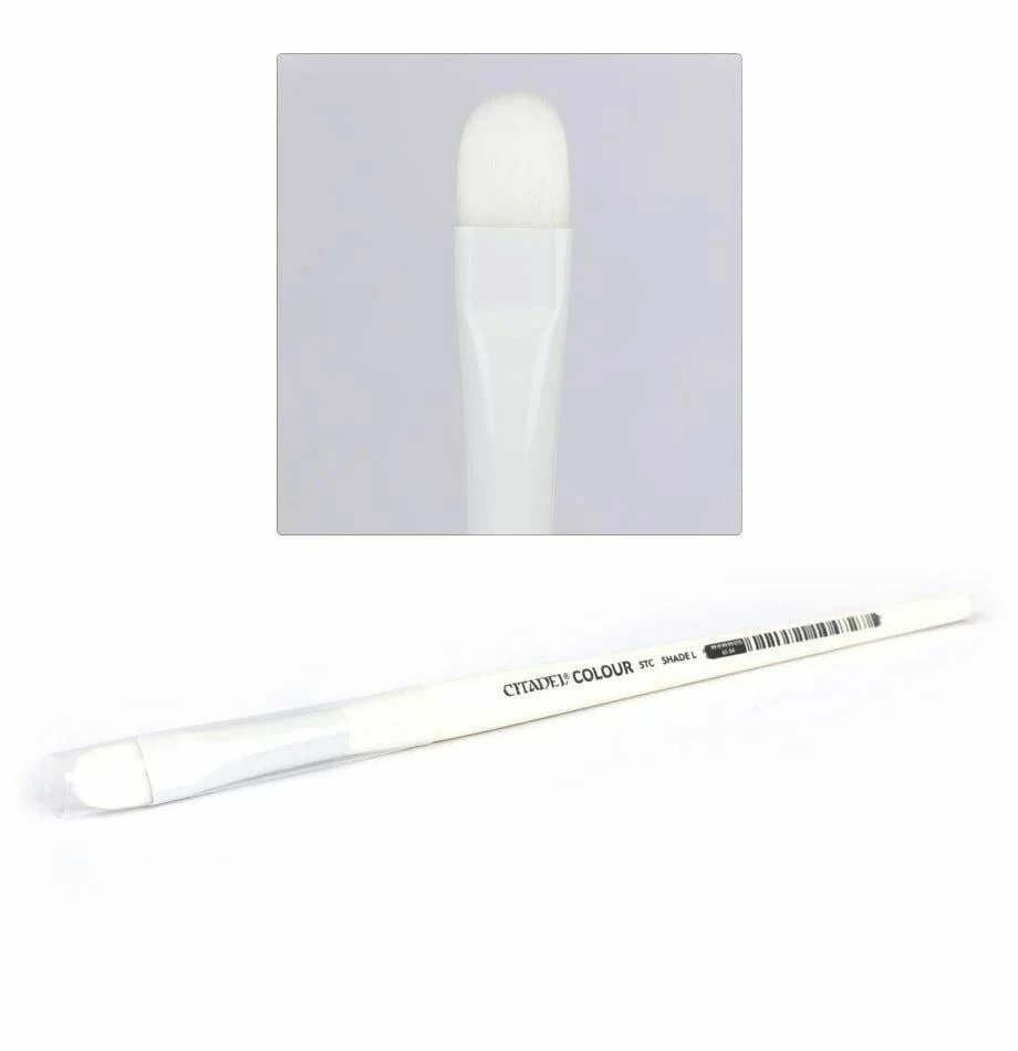 When painting large models with Citadel Shade paints, it’s important to get an even, smooth coat for best results. That’s why our L Shade brush has the broadest tip of any Citadel brush, perfect for picking up loads of paint and getting it all over the biggest Greater Daemons and Imperial tanks you can get your hands on.
