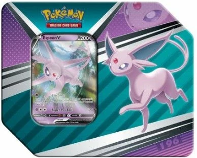 Level up your game with the Pokémon TCG: V Heroes Tin, featuring powerful Evolutions of Eevee as Pokémon V! Will you choose the relaxing radiance of Espeon V, the staggering stare of Umbreon V, or the gracious gifts of Sylveon V? Not only do these tins come with a battle-ready Pokémon V, but they also include a trove of treasures in Pokémon TCG booster packs.