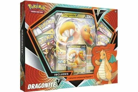 Lead the Dragon Types to Victory or Unleash a Fusion Strike! Boasting tremendous might, Dragonite V and Hoopa V are ready for battle! Trainers rarely see these formidable Pokémon—and few are lucky enough to catch them! Now you can make a powerful impression by adding their strength to your deck with the Dragonite V Box! You’ll get Dragonite V in both playable and display sizes, as well as extra goodies from Pokémon TCG booster packs. Each Pokémon TCG: Dragonite V Box includes: • 1 foil promo card featuring Dragonite V • 1 foil oversize card featuring Dragonite V • 4 Pokémon TCG booster packs • A code card for the Pokémon Trading Card Game Online