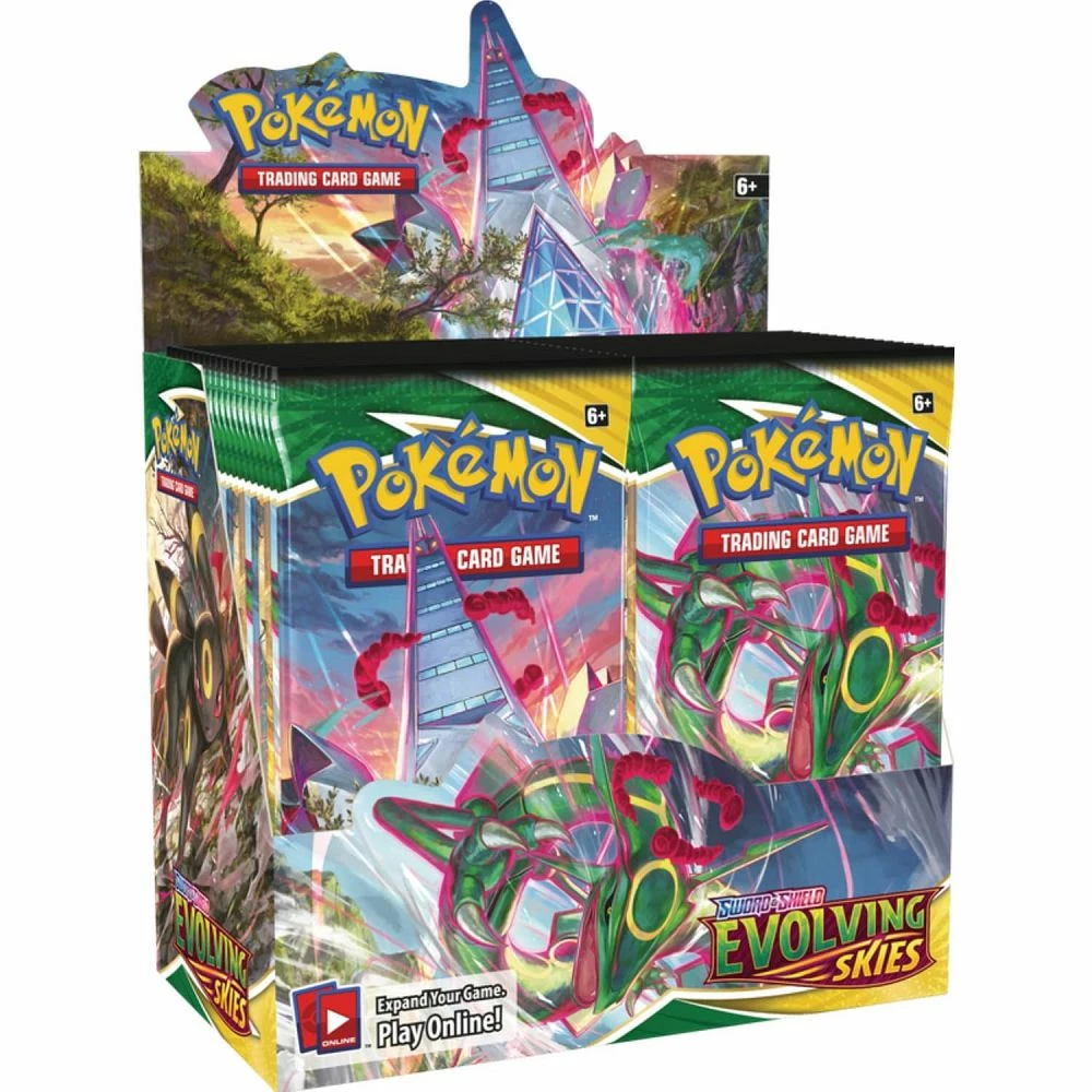 Sword & Shield—Evolving Skies includes Eevee and all of its Evolutions in the same expansion, and each Evolution of Eevee will appear as a Pokémon V and Pokémon VMAX. Some Eevee Evolutions will also have Battle Styles, such as Single Strike Flareon VMAX, Rapid Strike Vaporeon VMAX, Rapid Strike Sylveon VMAX and Single Strike Umbreon VMAX. In addition, Dragon-type Pokémon including Rayquaza VMAX and Duraludon VMAX will make their first appearance in the Sword & Shield Series of the Pokémon TCG. Dragon-type Pokémon have strong attacks but require multiple types of Energy, which will lead to even more engaging and strategic gameplay. The Sword & Shield—Evolving Skies expansion includes the following cards: 15 Pokémon VMAX 18 Pokémon V and 33 full-art Pokémon V 24 Trainer cards and five full-art Supporter cards A new Special Energy card