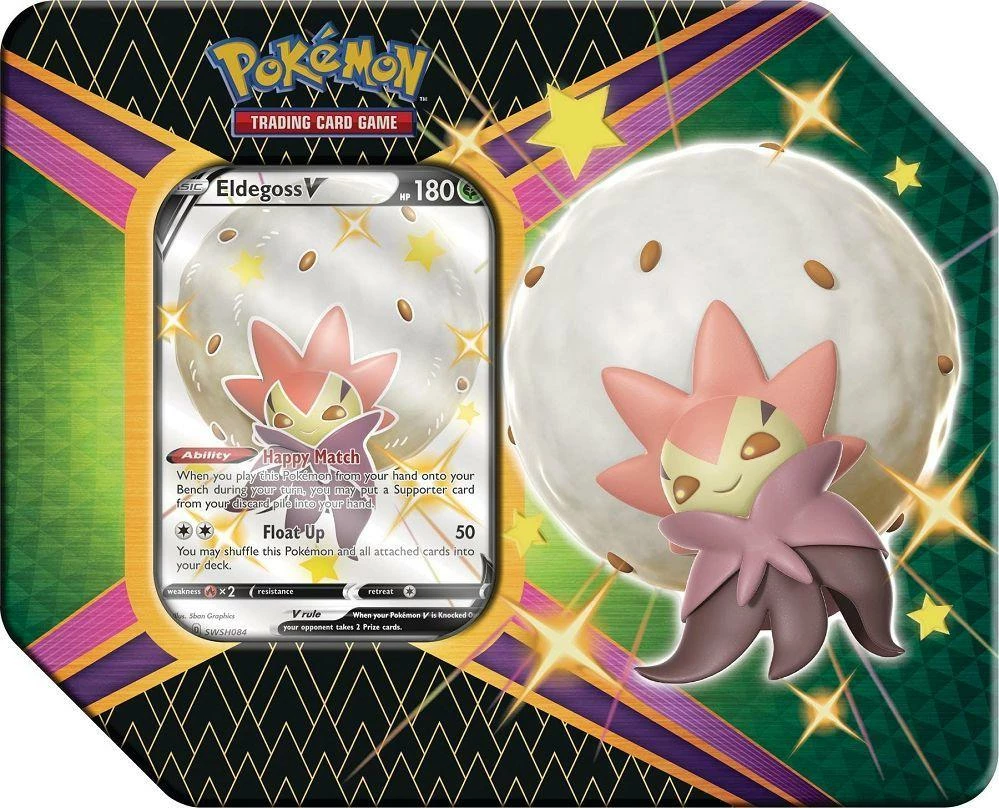Bold, Bright, and Shiny Pokémon! The Shiny Vault is full of distinctively colored Pokémon, including three especially fine ones from the Galar region! Choose the fluffy power of Eldegoss V, the lightning strikes of Boltund V, or the watery missiles of Cramorant V in the Pokémon Trading Card Game: Shining Fates Tin. Each of these fantastic tins contains a super-powerful (and Shiny) Pokémon V, with the tricks, the looks, and the sheer bravado to take you to the top in your next Pokémon battle!