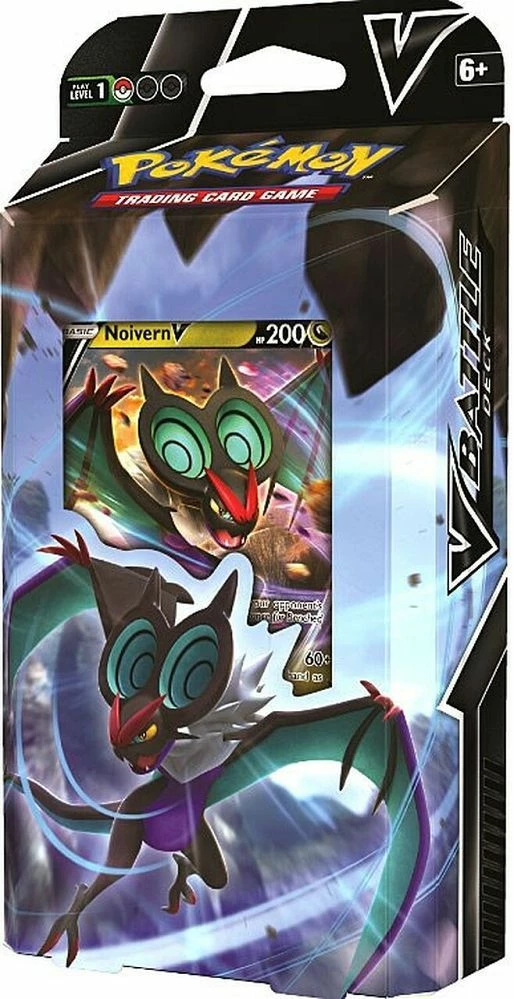 Swoop from the Sky and Bring the Boom — with Rayquaza V and Noivern V! Welcome the return of Dragon types to the Pokémon TCG with a deck led by Rayquaza V or Noivern V! While Rayquaza V combines the powers of Fire and Lightning, and Noivern V channels Psychic and Darkness Energy, you can turn your discards into damage, sync up your hand size to deliver crushing blows, and master all the tricks of these two V Battle Decks! In each V Battle Deck, you’ll find: