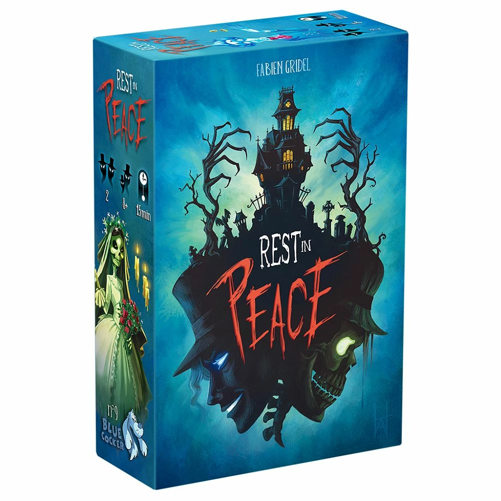 Return form the dead to win control of your ancestor’s mansions. Send ghosts to haunt the manors or use the help of psychics to swing things in your favor. Rest in Peace (R.I.P.) is a tactical game for 2 players. Each player has a family of 21 ghosts (cards from 1 to 6). On their turn, players will try to win Mansion tokens by playing cards that equal a majority on the house in play.