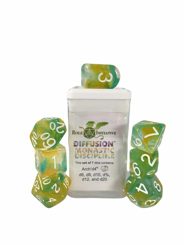 Common Ground Games Role4Initiative 7ct Polyhedral Dice Set W/ Arch’d D4 – Monastic Discipline
