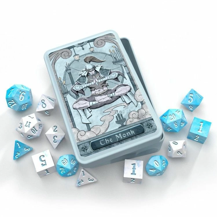 Beautifully designed tins of class-curated dice. Original tarot-style art representing each of the major 5e and Pathfinder classes (and the GM) in a collector’s edition tin. Each set of dice is carefully chosen to suit each class: extra D6’s for the Rogue’s Sneak Attack, extra D4’s for the Wizard’s Magic Missiles, and extra D12’s for the Barbarian’s massive Battle Axe!