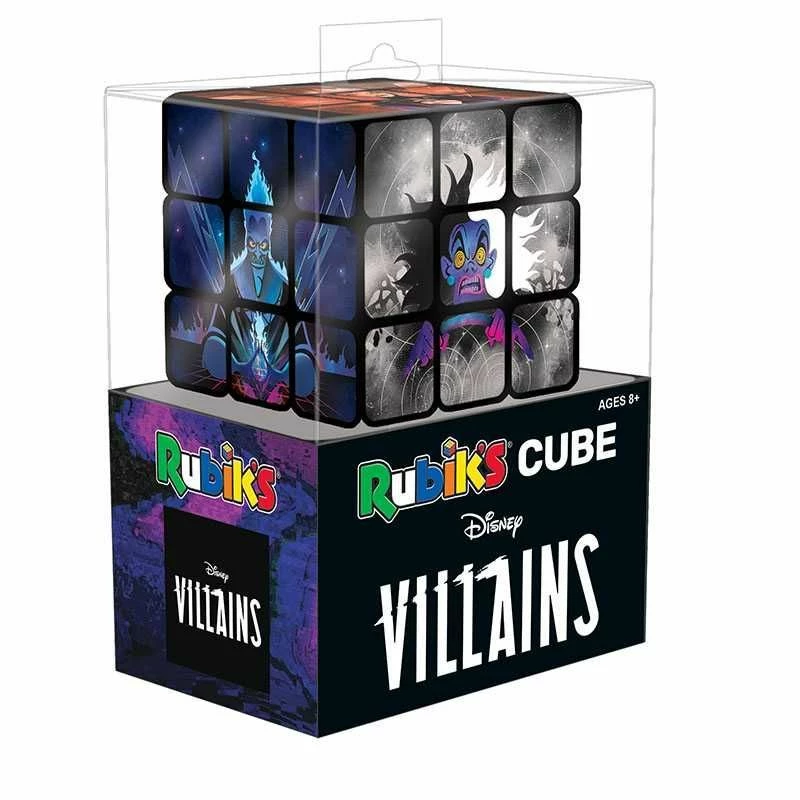 Embrace the mischief and mayhem of the Disney Villains Rubik’s Cube! Rediscover the darker side of your fairytale favorites with Hades, Cruella de Vil, Maleficent, The Evil Queen, Ursula, and Dr. Facilier on this classic 3D puzzle. Give it a mesmerizing spin to mix up their wicked grins. Then straighten them out to how they appeared upon your first encounter!