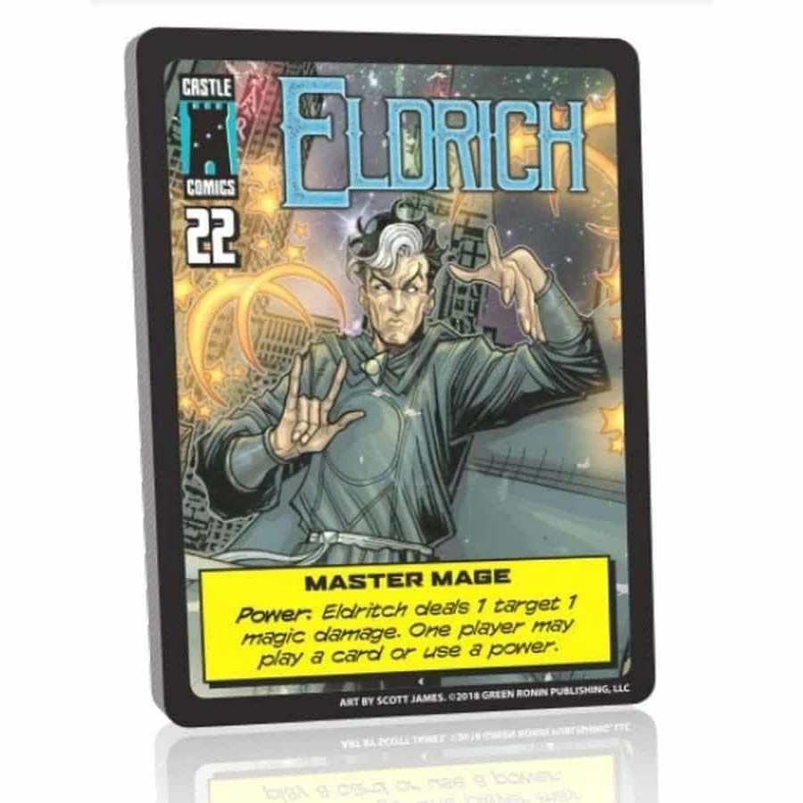 Eldrich is a new hero for the Sentinels of Earth-Prime card game. Originally an archeologist in the 1930s, he is now the world’s Master Mage. Eldritch is an ally of the Freedom League and provides EarthPrime’s first line of defense against mystical threats. This miniexpansion includes a unique 40-card deck, a hero character card, a variant card, and a divider that fits right in the core game’s box. This deck is also 100% compatible with Sentinels of the Multiverse. Expand your Sentinels of Earth-Prime character options with Eldrich!