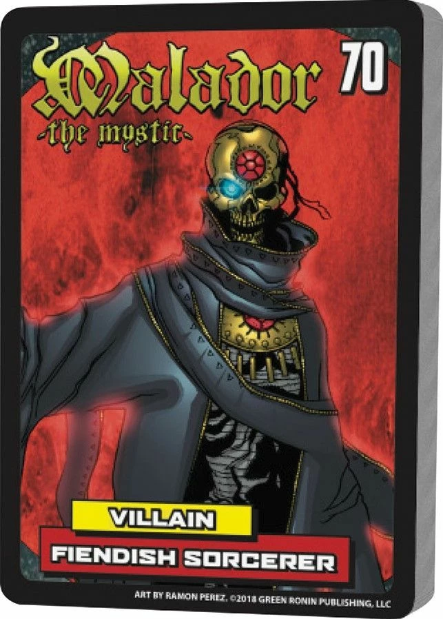 Malador the Mystic is a new villain for the Sentinels of Earth-Prime card game. An adept of the arcane arts, he earned the title of Master Mage in Atlantis millennia ago but betrayed his oath and his duty to humanity. Malador bargained with unspeakable evil entities from other dimensions, seeking power, knowledge, and enternal life above all else. Can the Freedom League stop his sinister plans? This mini-expansion includes a unque 25-card deck, a character card, a rulers card, and a divider that fits right in the core game`s box. This deck is also 100% compatible with Sentinels of the Multiverse.