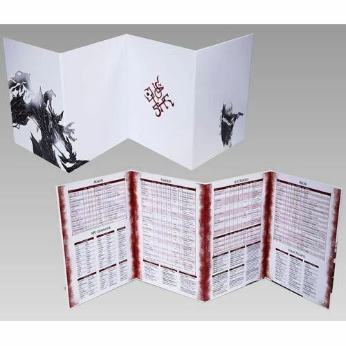 Hide the true horrors of the dying world from your players with this sturdy, four-panel Game Masters Screen. Provides an at-a-glance reference for the most relevant and most frequently used in-game information, equipping Game Masters of all skill levels with essential support. Features generation prompt tables for NPCs and Narrative events, ensuring the GM is never caught short of inspiration for gaming.Includes an 8-page bestiary booklet, filled with stat profiles for brood variants and faction NPCs – Mortal and Nemissary alike. An excellent resource for new and existing Game Masters to facilitate inspired adventures and an engaging play experience.