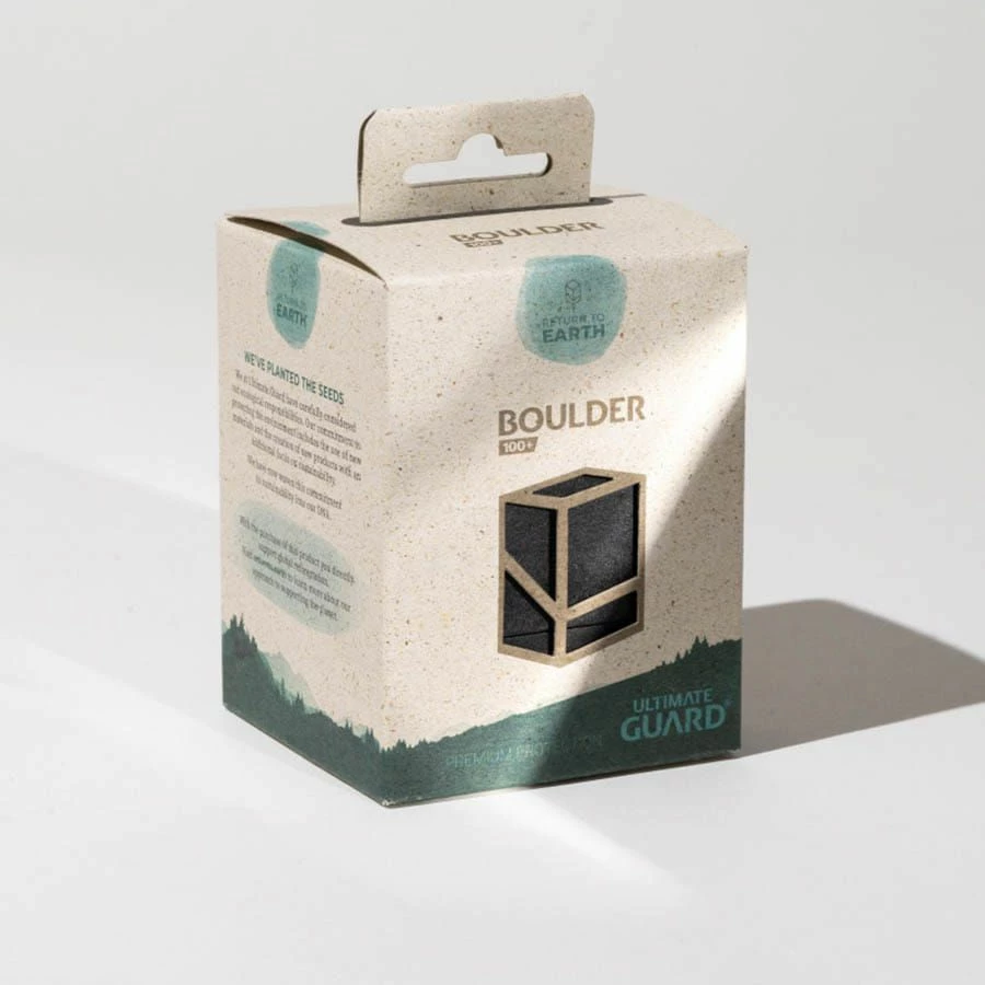 Developed and produced in Germany, this handy and solid Boulder 100+ with super-easy opening consists of 97% renewable resources, with a FSC certified grass paper packaging. The deck case is recyclable and holds up to 100 double-sleeved or 120 single-sleeved cards when using Ultimate Guard Sleeves.