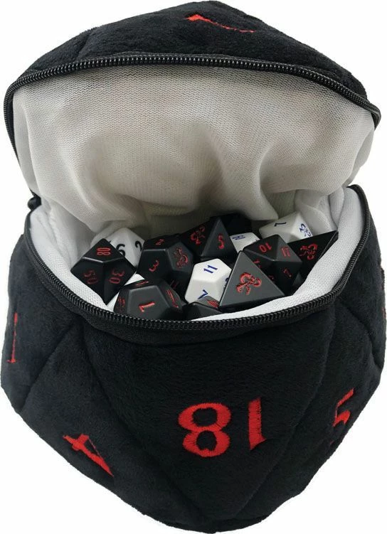 Need +5 to dice hoarding? We`ve got you covered with the new D20 Plush Dice Bag for Dungeons & Dragons! Based on our ever-popular jumbo D20 plush, this dice bag features a zippered center pocket that holds up to 50 dice, and a carabiner-style hook that keeps your dice securely at your side. This D20 Plush Dice Bag measures approximately 6.5 inches in diameter, and is the perfect accessory for any D&D adventurer or dice enthusiast!