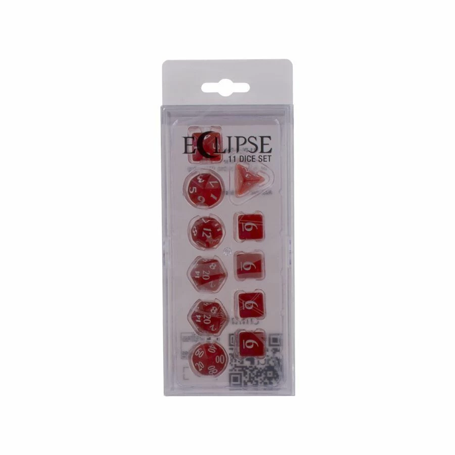 The Eclipse 11 Dice Set is a gamer’s best friend! While most RPG dice sets include only the polyhedral 7, Ultra PRO is here to help you UP your game with additional dice needed for modern RPG games. Each set includes D4, 4x D6, D8, 2x D10, D12, and 2x D20. The dice come in a 2-piece acrylic storage box with enough space for up to 40 dice, and sized to fit pens, markers, or other small RPG accessories. Eclipse Dice feature a shimmering finish that makes every roll magical! Aligned with the 12 Eclipse colors, these dice are the perfect companion for the 100+ Deck Boxes, Matte or Gloss sleeves, and PRO-Binders.