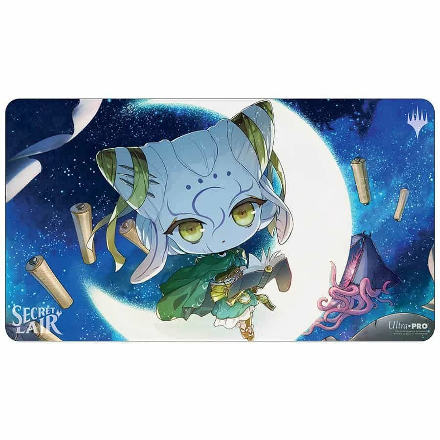 Playmats feature popular Magic: The Gathering artwork of Tamiyo, the Moon Sage from the Li’l Walkers Secret Lair Drop. Made with a soft fabric top to reduce damage to cards during play and a non-slip rubber backing to keep the playmat from shifting during use, playmats enhance the gameplay experience. With dimensions of approximately 24 in. x 13.5 in., a playmat also makes an excellent oversize mousepad for home or office.