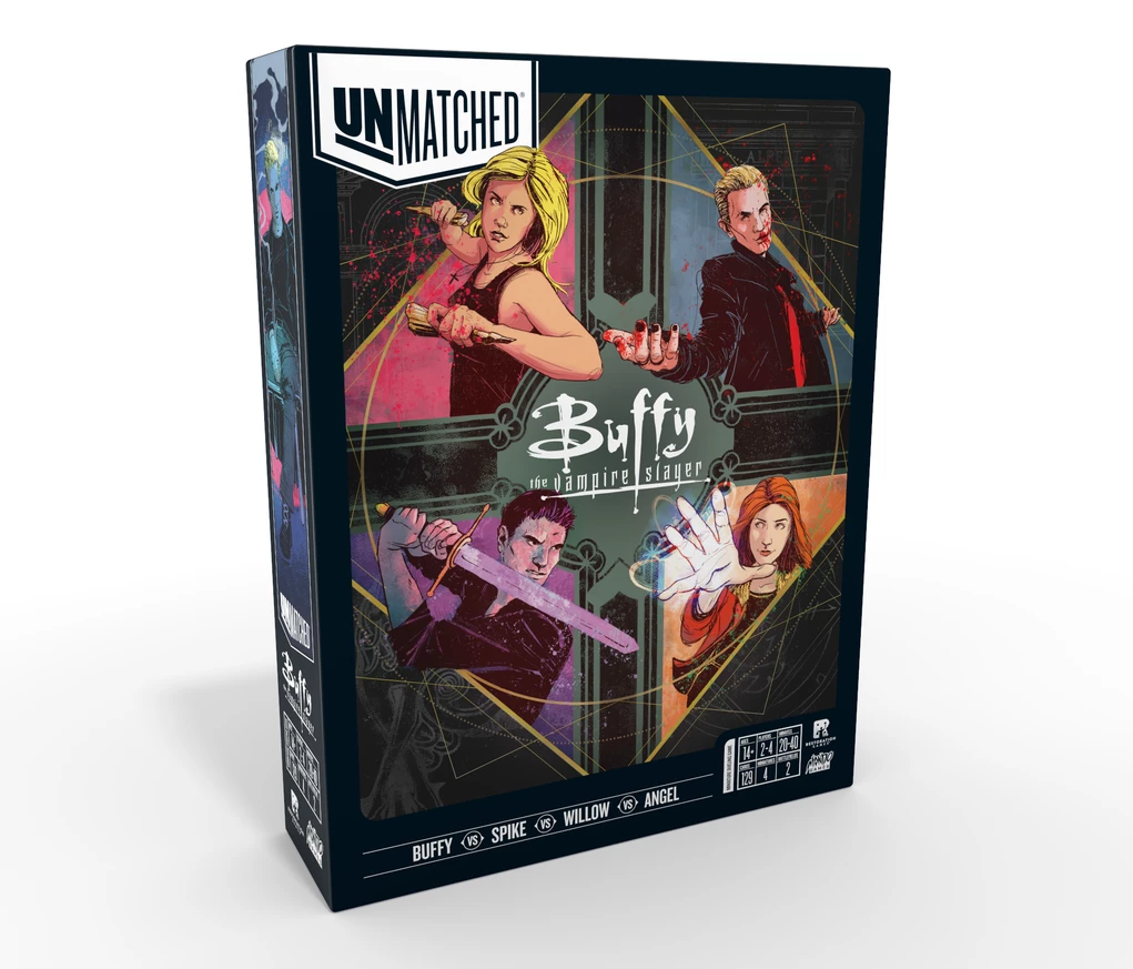 Unmatched: Buffy the Vampire Slayer features four heroes. Buffy will hit you with Mr. Pointy or summon her Slayer’s strength for a cartwheel kick. When it’s time for backup, she’ll take her pick between insightful Giles or reliable Xander. Spike, a relentless hunter, seeks the shadows and calls on Drusilla’s Sight to let him know just where and when to strike. Willow, a peerless witch, dabbles in black magic and risks her darker self, potent but dangerous. At times, only Tara can bring her back from the brink of the abyss. Angel, once the Scourge of Europe, is cursed with a soul, conflicted by his victories and taking solace in his losses. Faith is there to make sure things stay “Five by Five”.