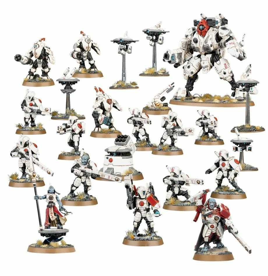 10x Fire Warriors with 2x Drones and 1x Support Turret. These can be built as a Strike Team or a Breacher team