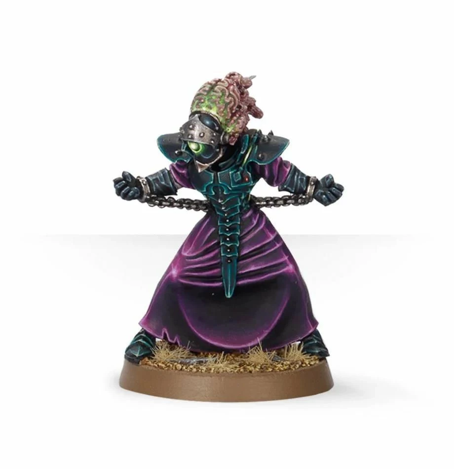 The Medusae are unusual creatures, even in a place like Commorragh. They are highly empathic parasites that look like a collection of brains and spinal cords one atop another, and they float through the ether like jellyfish, feeding on daydreams and nightmares. A Medusae will often latch onto a host creature, which they will enslave to their will, enabling them access to realspace. While they retain most of their original appearance, the host will develop a single deadly eye, which will be covered by a heavy steel visor. When this visor is lifted, the Medusae will paralyse those under its gaze with a wave of raw anguish, plunging them into a coma from which there is no recovery.