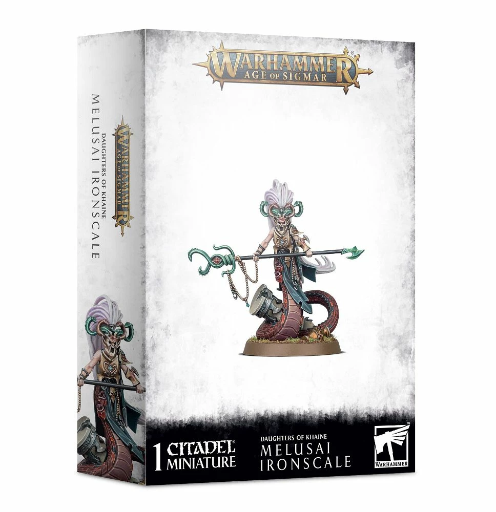 Crafted from the aelven souls that most cried out for bloody revenge, the Melusai Ironscales were created as elite war leaders by Morathi herself and serve their mistress with single-minded fury. Terrifying combatants in their own right, the most unlucky of their victims are turned into statues of living crystal, forever to remain frozen but entirely conscious.