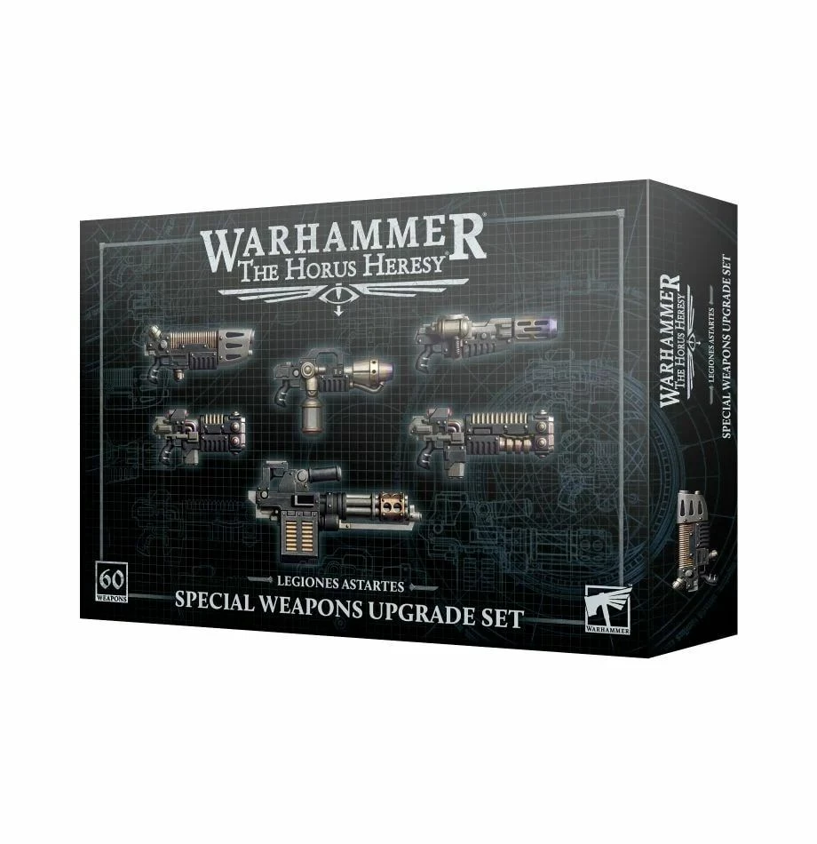 This plastic upgrade kit can be used to equip Legionaries from the MKVI Tactical Squad set with powerful special weapons, suitable for use in a Legion Tactical Support Squad. The kit includes 10 flamers, 10 plasma guns, 10 meltaguns, 10 rotor cannons, 10 volkite chargers, and 10 volkite calivers, allowing you to upgrade up to three full MKVI Tactical Squad sets into six Tactical Support Squads of 10 models, or 12 units of five models. The kit includes five slightly different designs for each type of special weapon, ensuring your Legionaries will remain distinct when massed on the battlefield.