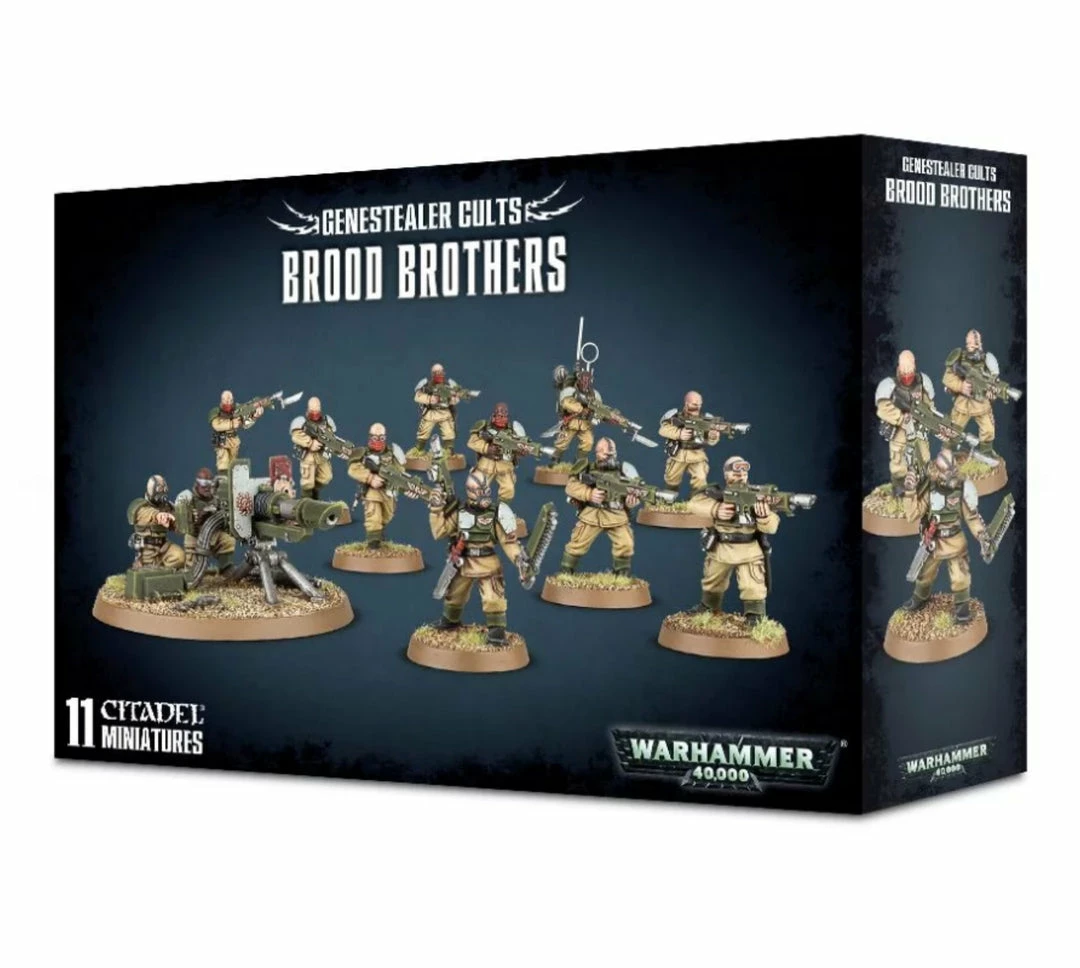 Brood Brothers are core Troops available to a Genestealer Cults army, letting you bring the might of the Astra Militarum to bear in your battles. Optional heavy and special weapons let you customise them to tackle any foe, while their numbers make them great for holding key objectives.