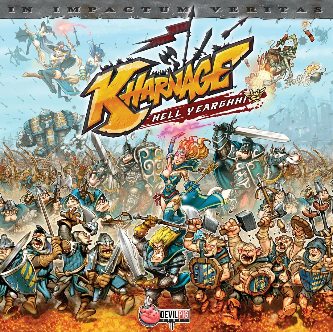 Kharnage is a fast and fun fighting game in a med-fan world in which you are the warchief of the mighty humans, the strong (and alcoholic) dwarves, the amazing horde of goblins, or the ferocious orcs (and their giant!). Your goal in Kharnage is to take control of something strategically essential, astoundingly beautiful, and envy of all other nations: a hill. Yes, just a hill. Admittedly, it is a nice hill. It may have a very commanding view of the surroundings, or it may not. You won’t know until you get up there! To do so, you’re going to have to drive off the armies of the other players by simply causing as much mayhem and bloodshed as possible.