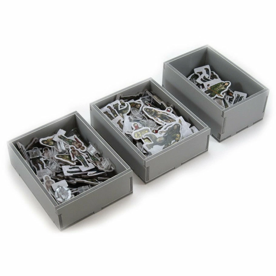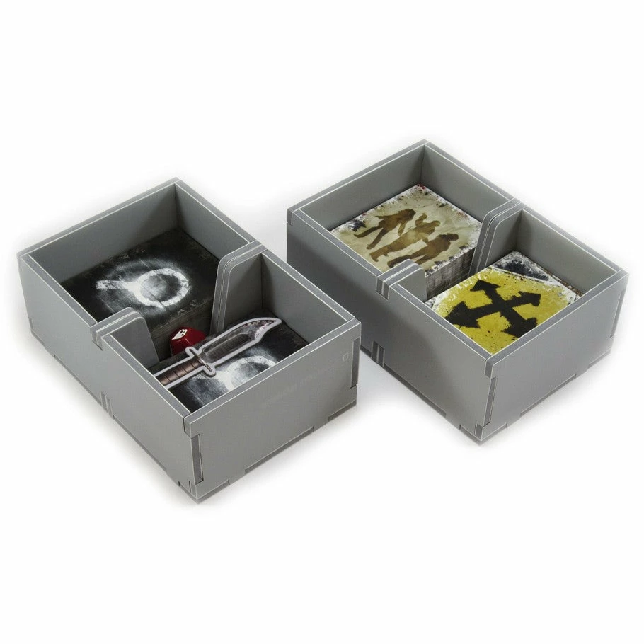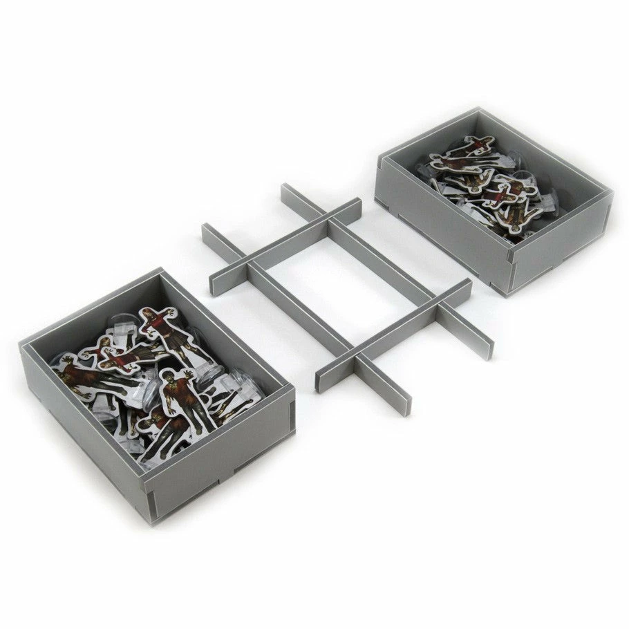 This insert is designed to be compatible with Dead of Winter®. The same insert is also compatible with The Long Night®. The design provides both efficient storage and improved game play. Many of the trays can be utilised during the game, and they greatly aid set-up and clear-away times. There is space for all cards to be sleeved.