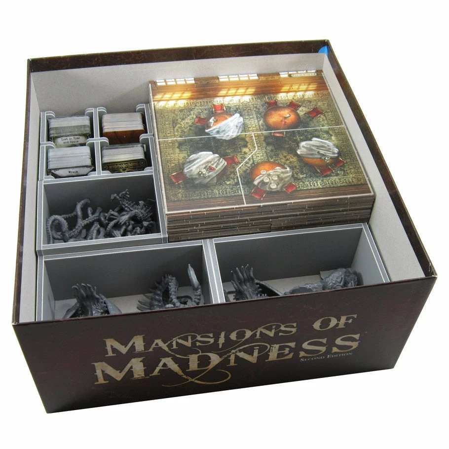 Insert compatible with Mansions of Madness 2nd Edition®, and Beyond the Threshold®, Streets of Arkham®, Sanctum of Twilight®, and Horrific Journeys® expansions. The design provides both efficient storage and improved game play. The trays can be utilised during the game, and they greatly aid set-up and clear-away times.