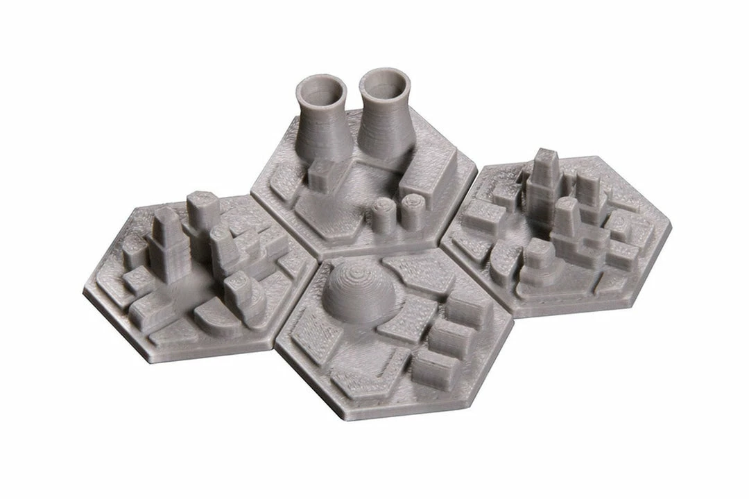 Terraform your game board by replacing the stock cardboard tiles with these 3D-printed hex tiles from The Broken Token.